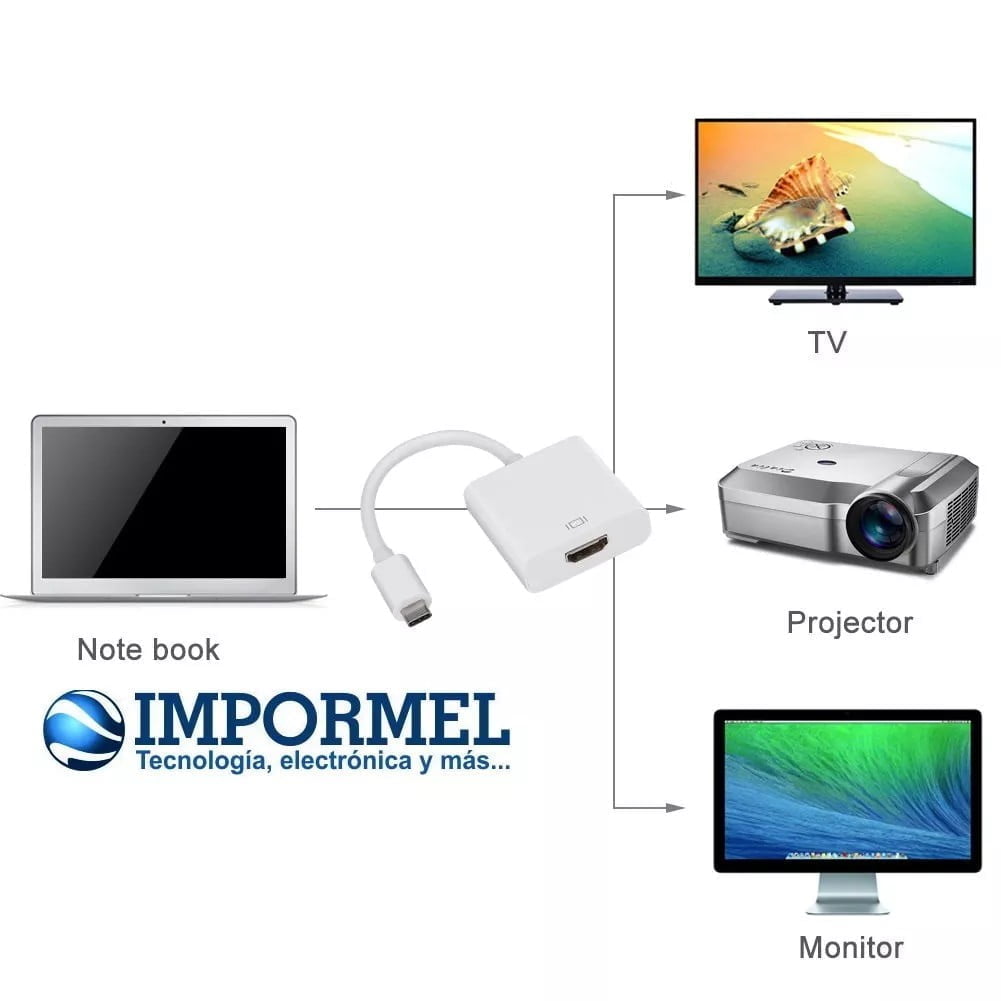 4. Conecte su computadora portátil y su teléfono con el puerto de tipo C a cualquier pantalla compatible con HDMI, como HDTV, proyector, monitor, etc.