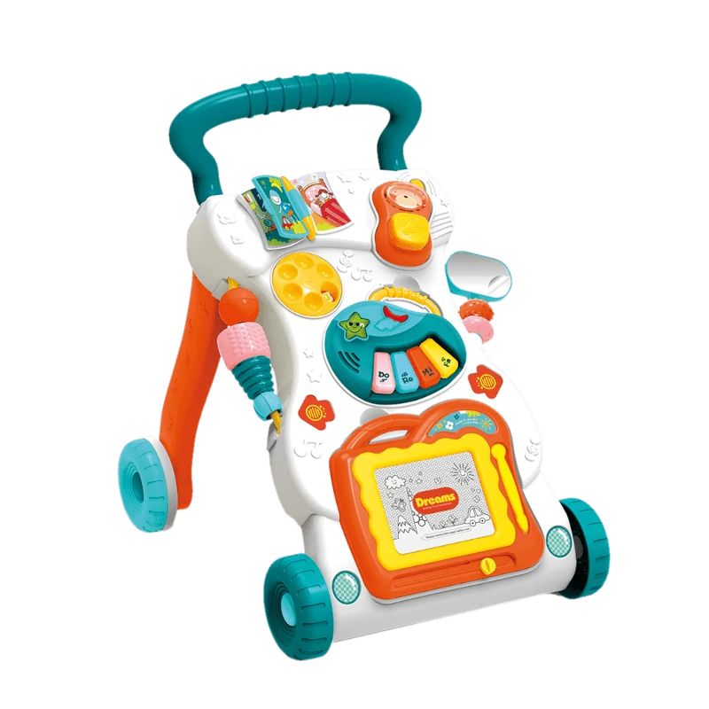 Una andadera con juguetes combina la funcionalidad de un caminador tradicional con la interactividad de un centro de juegos. Se trata de un producto diseñado para niños de primera infancia, generalmente a partir del año de edad, cuando comienzan a dar sus primeros pasos.