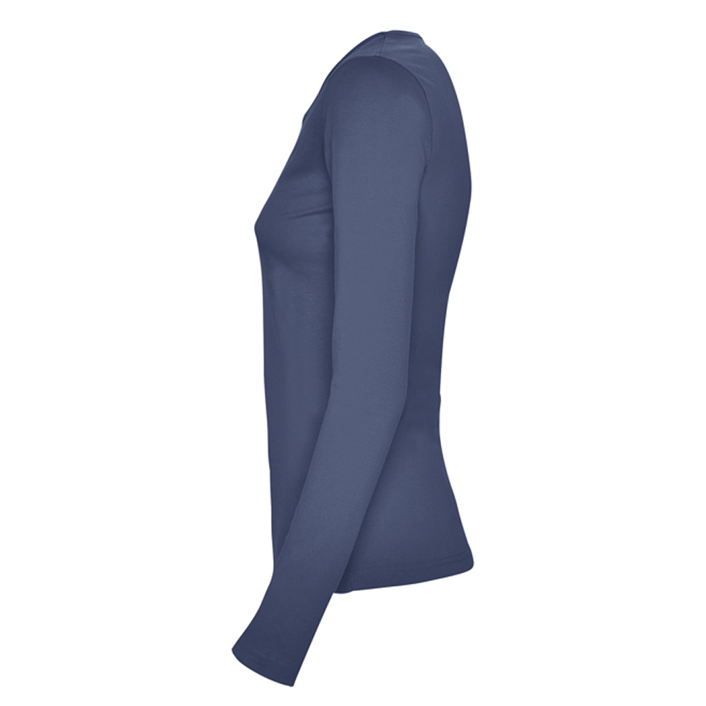 Camiseta semientallada, de manga larga, 100% algodón y cuello acabado con ribete fino. Sin puños. Costuras laterales.
