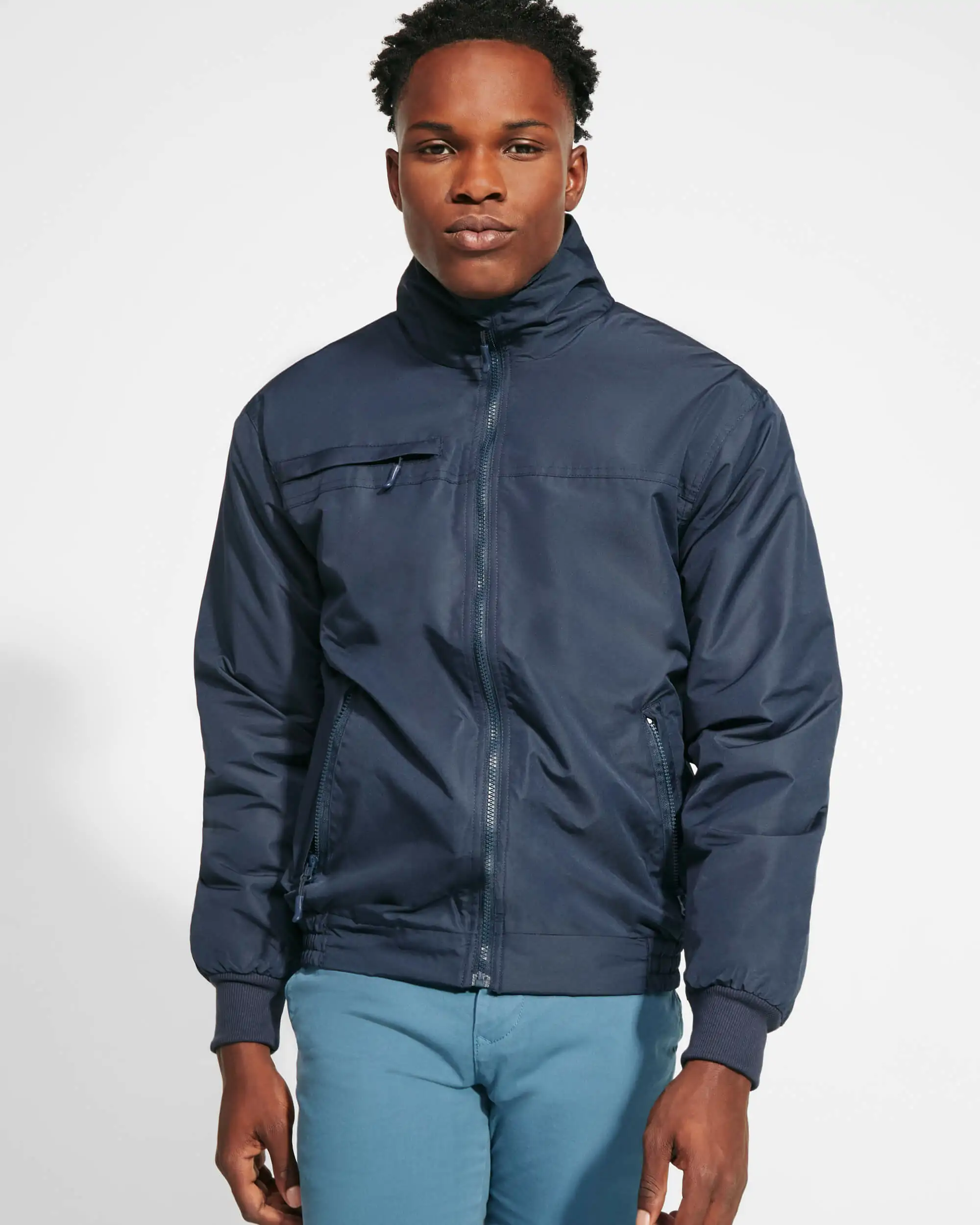 - Bolsillos laterales con cierre de cremallera. Un bolsillo de pecho también con cierre de cremallera y protector a modo de solapa.