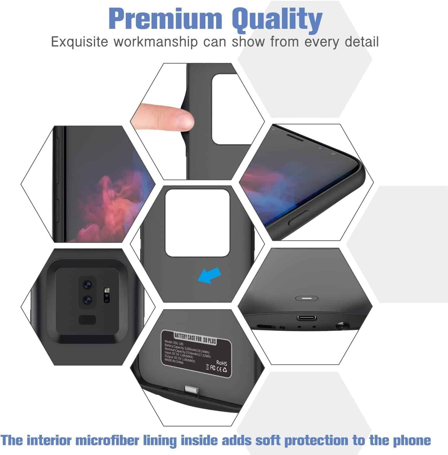 Características actualizadas: fabricada con las dimensiones específicas del Galaxy S9, el interior de esta funda de batería está cubierto con forro de microfibra suave para proteger el panel de cristal trasero de tu teléfono de daños cosméticos. La apertura extendida para la cámara trasera también puede facilitar la extracción de la funda de la batería sin dejar manchas de huellas dactilares en la cámara.
