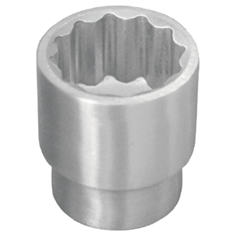Llave de vaso para aprietes con carraca de cuadradillo de 1/2″. Perfil para tuercas bihexagonales (12 caras). Perfil bihexagonal regular. Permite un apriete muy preciso con una alta transmisión del esfuerzo, sin desgastar el perfil.