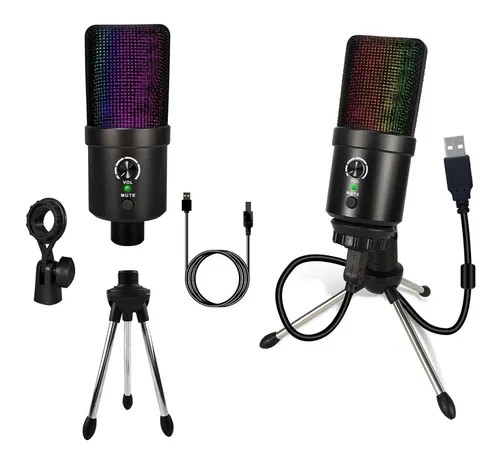 Función: Cancelación de ruido, micrófono de condensador, micrófono USB, con luces LED