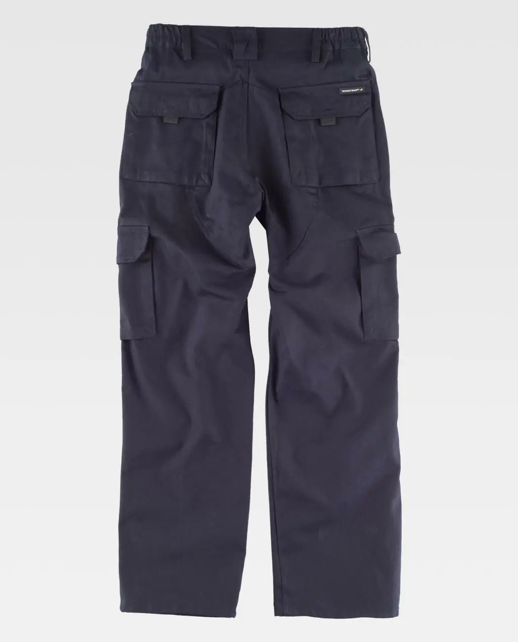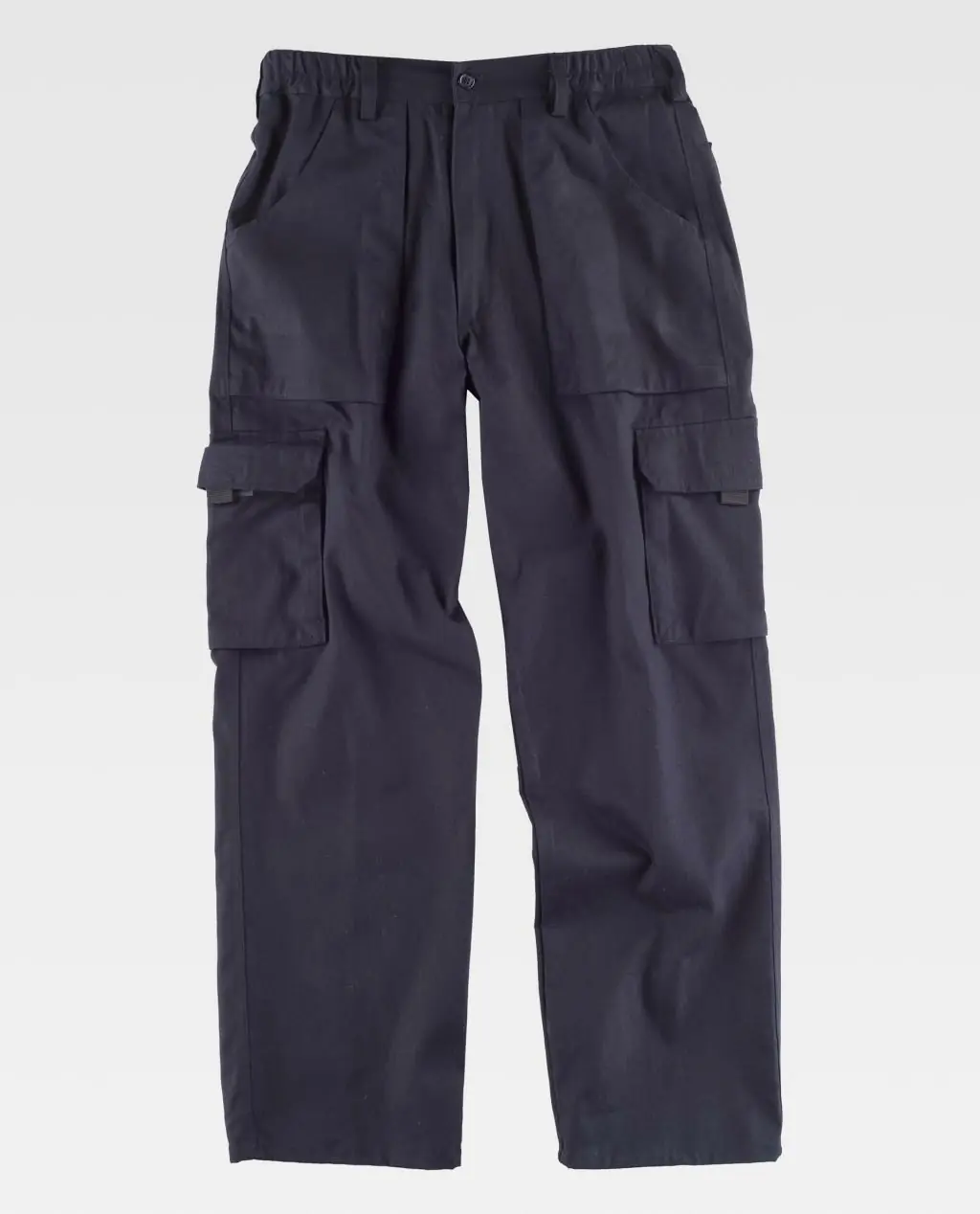 - Refuerzo en culera. Elástico en los laterales de la cintura. Trabillas para cinturón. Cierre de botón y bragueta de cremallera.