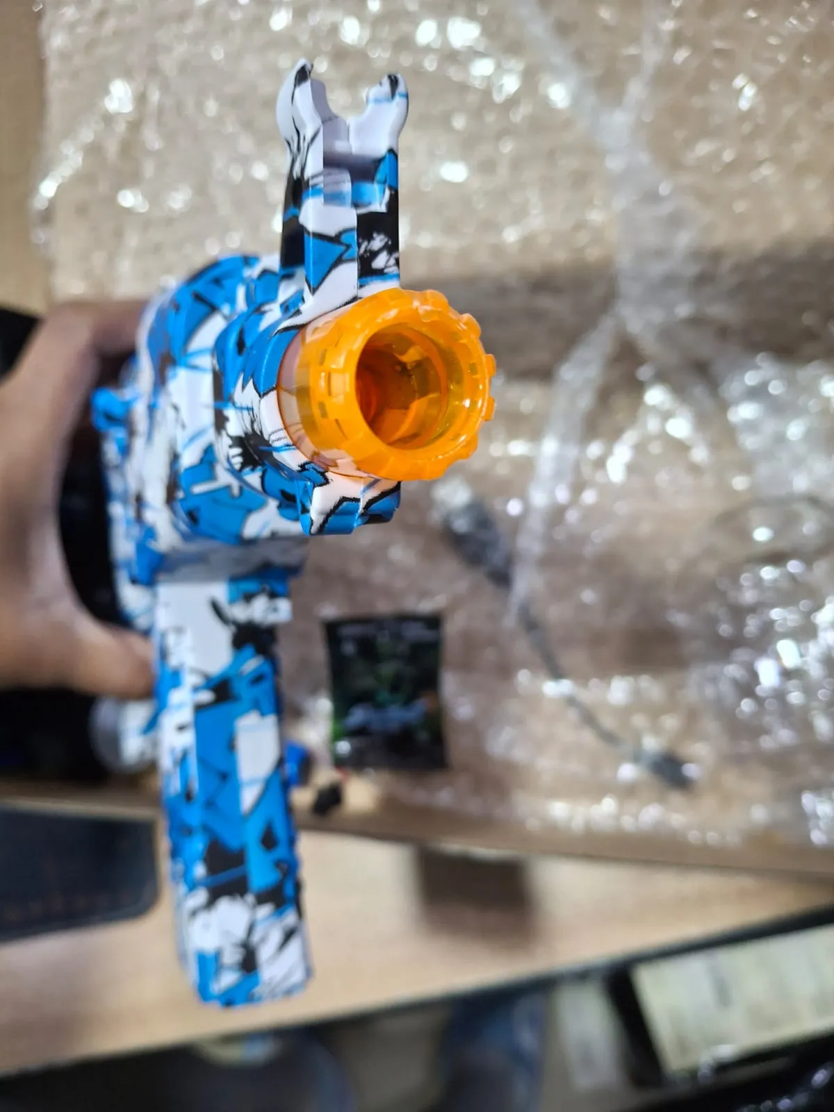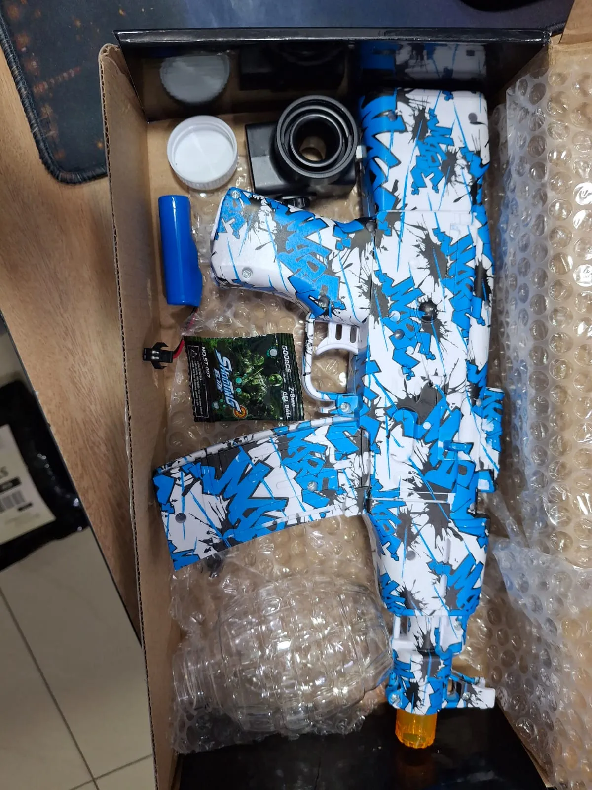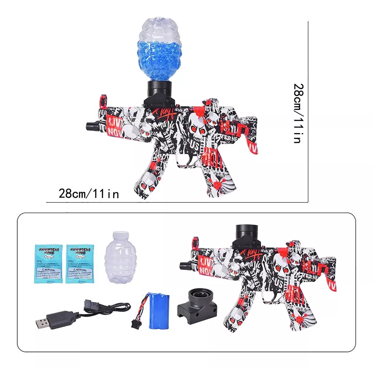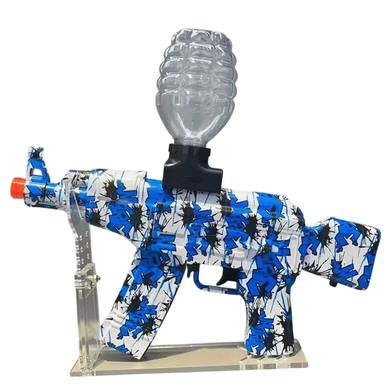 Se trata de un tipo de pistola de juguete que utiliza bolas de hidrogel como munición. Estas pequeñas esferas, hechas de un polímero superabsorbente, se hidratan con agua y se expanden hasta alcanzar un tamaño ideal para ser disparadas. Al impactar, se desintegran sin dejar residuos ni manchas.