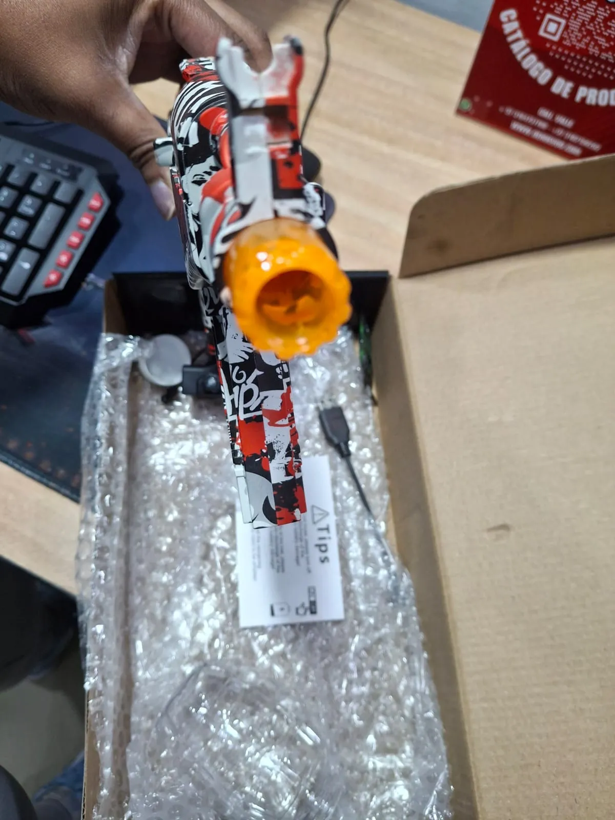“Esta pistola es recargable, cuenta con cable usb y la pueden usar tanto padres como hijos…”