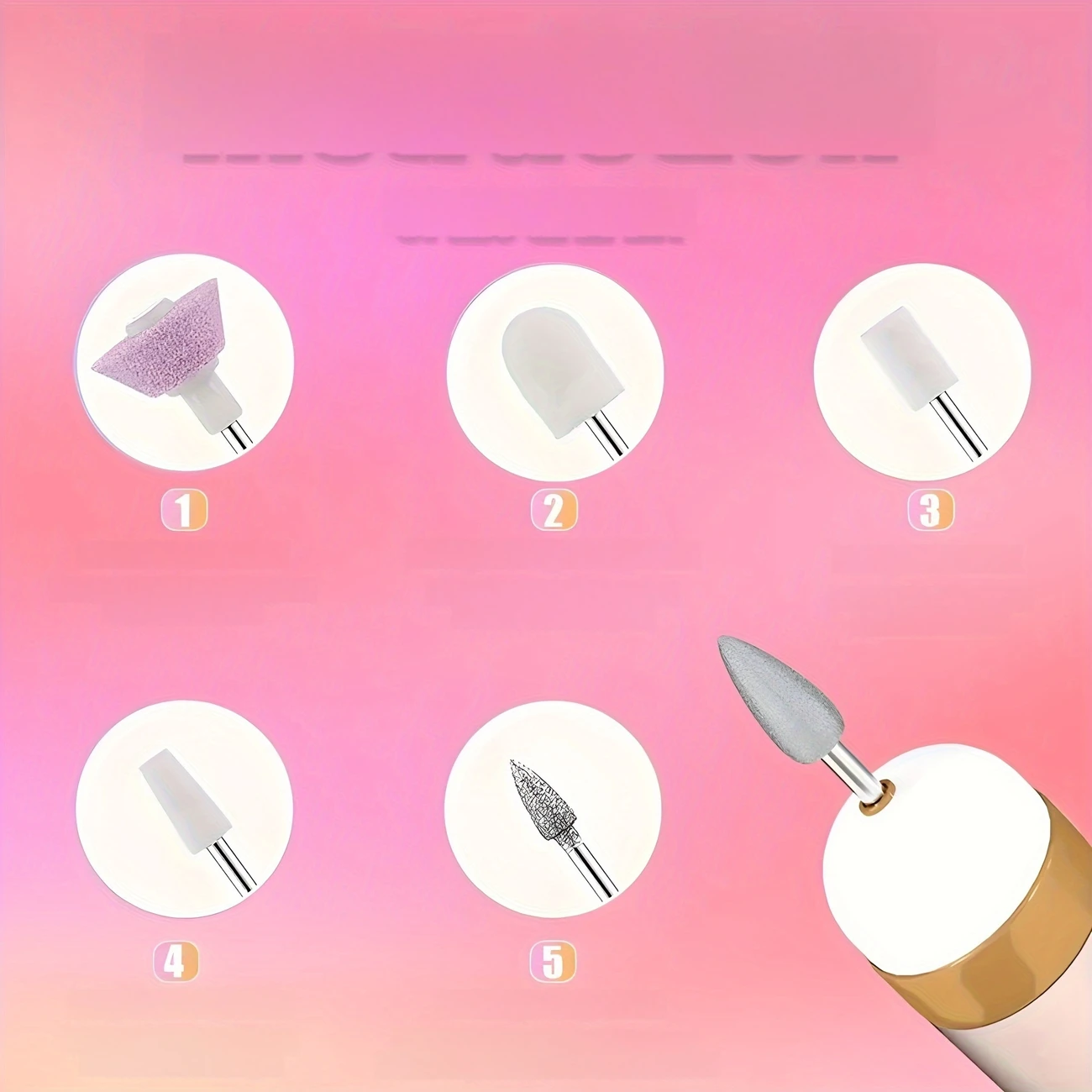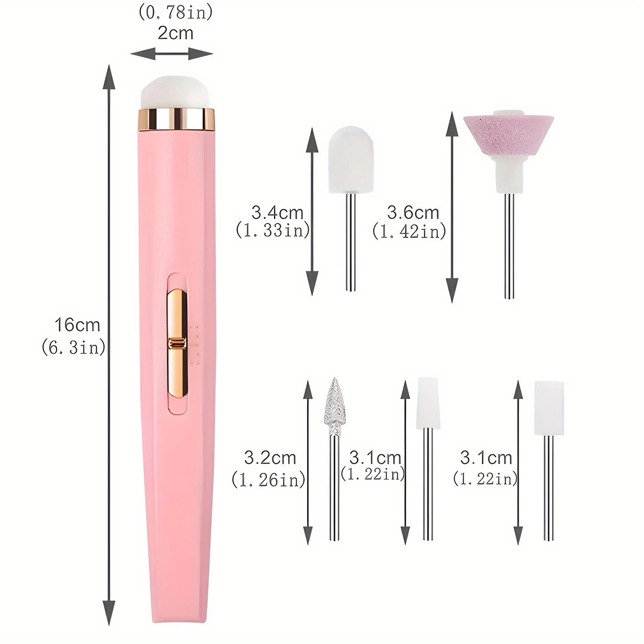 Kit de 5 cabezales con carga USB y batería de larga duración, no necesitas volver al salón. Todo está al alcance de la mano: brillo, forma, remoción y cuidado constante.