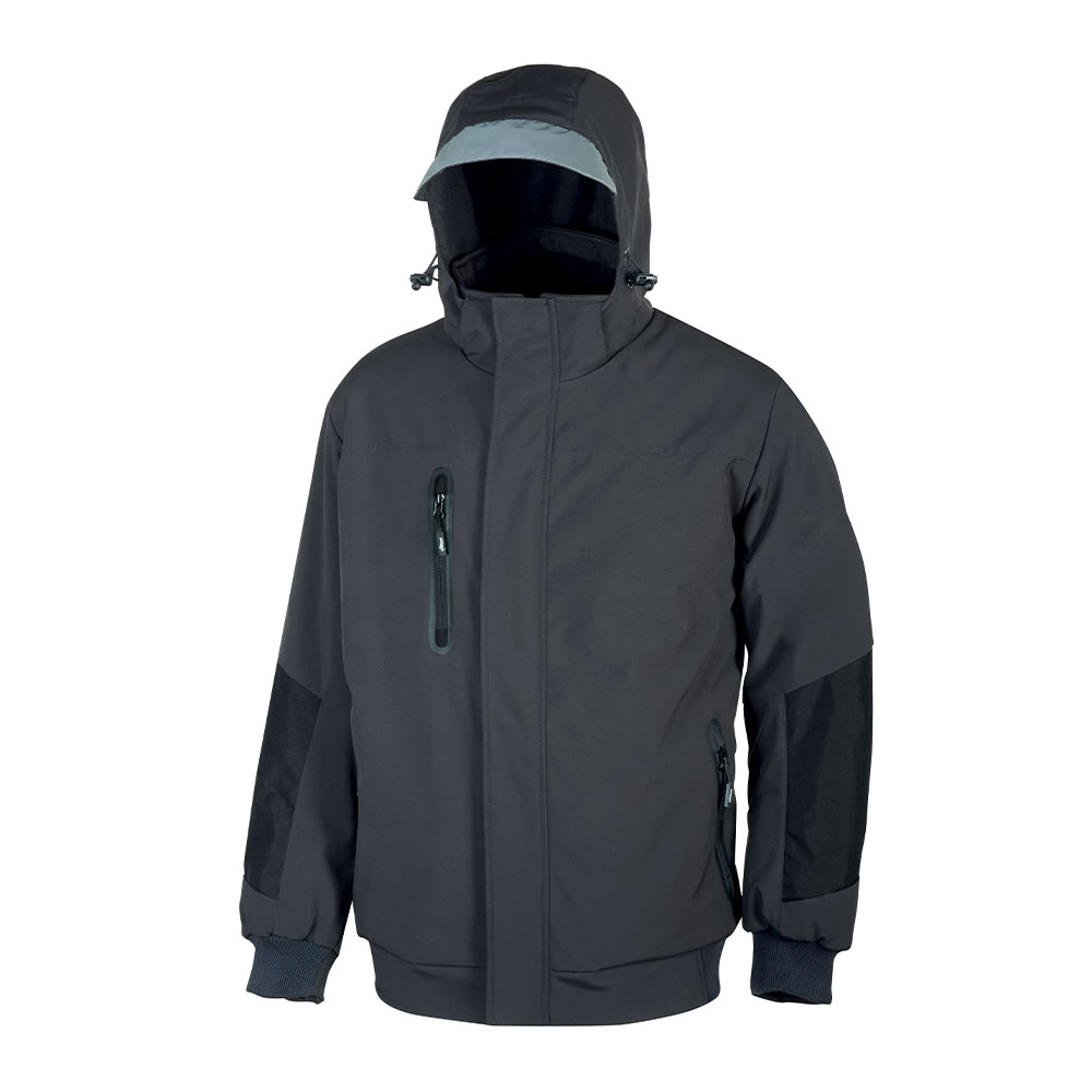 Chaqueta de tela Softshell acolchada, elástica, transpirable, cortaviento y repelente al agua. Dos grandes bolsillos