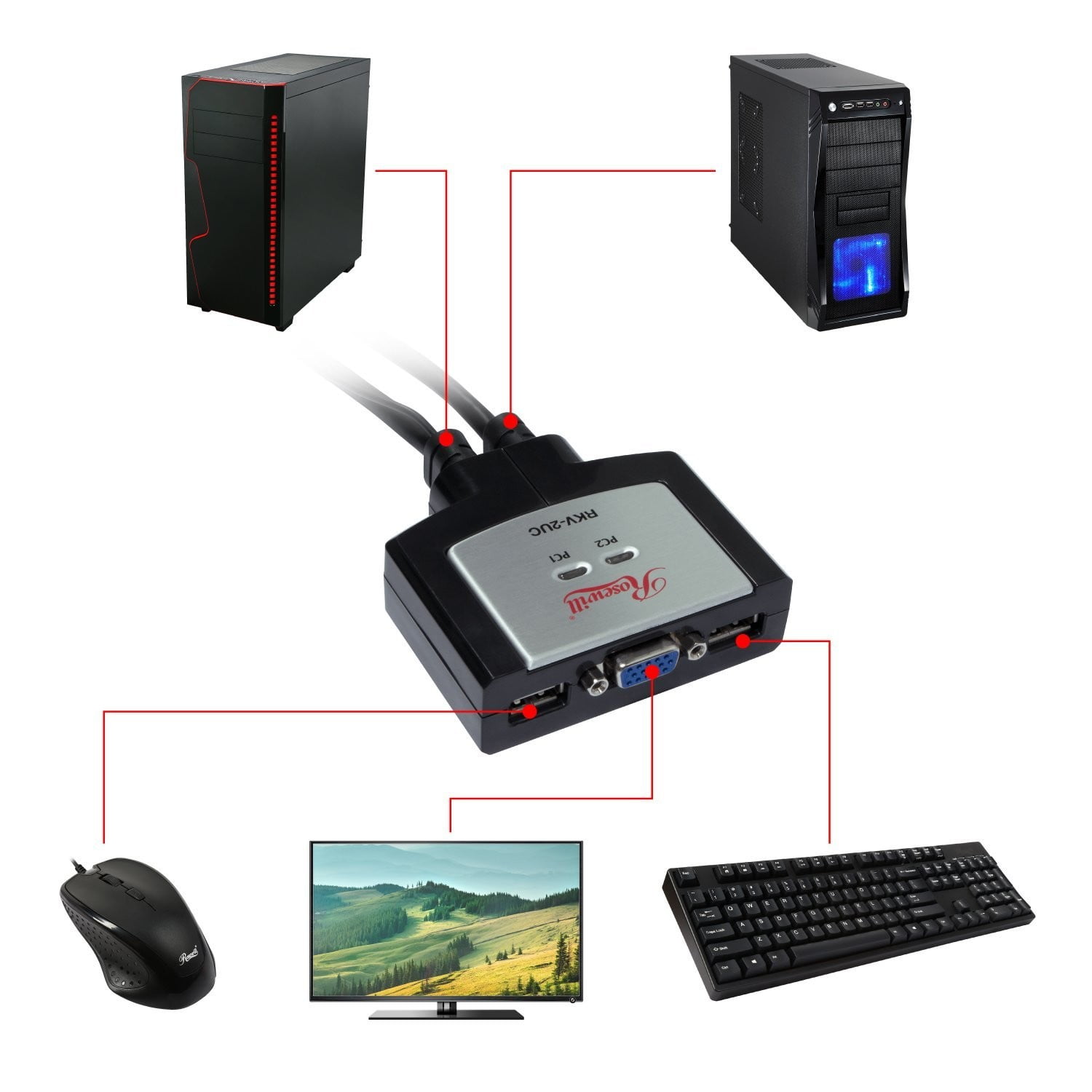 • El conmutador KVM USB Rosewill RKV-2UC de 2 puertos admite múltiples plataformas, incluidas las computadoras Windows y Mac, así como las estaciones de trabajo Sun Solaris