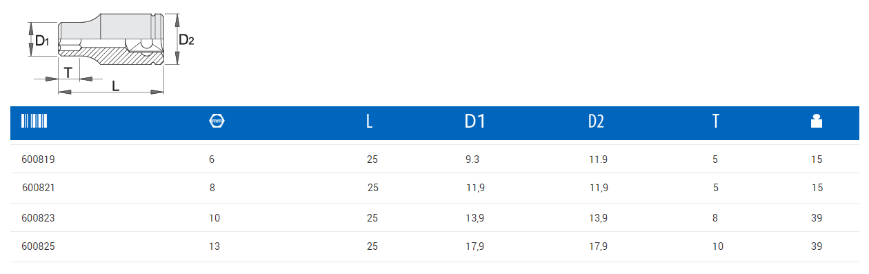UNIOR*Vaso 1/4″ – 06 188/2 6P