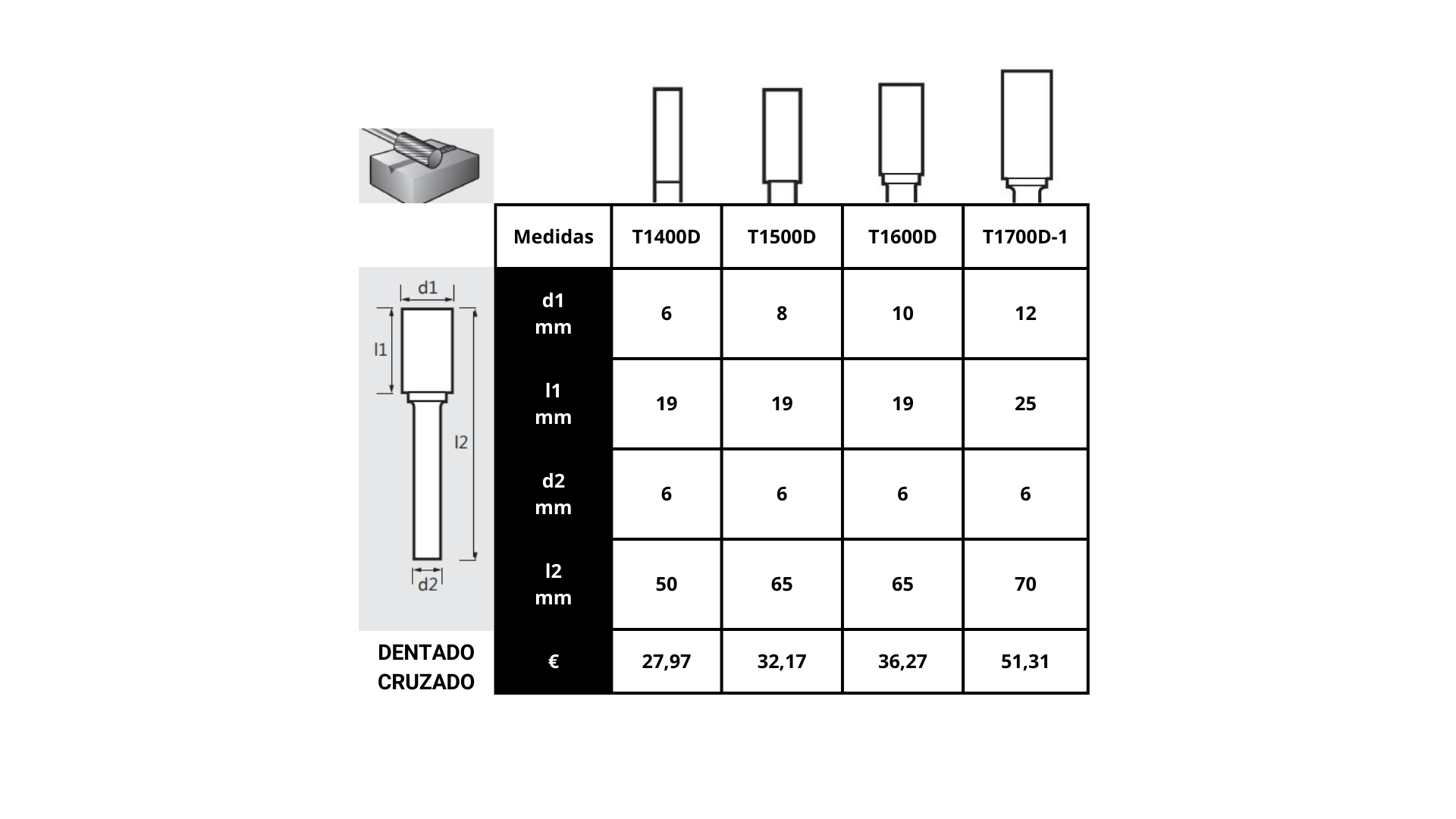 Fresa rotativa cilíndrica – Dentado cruzado 06mm.