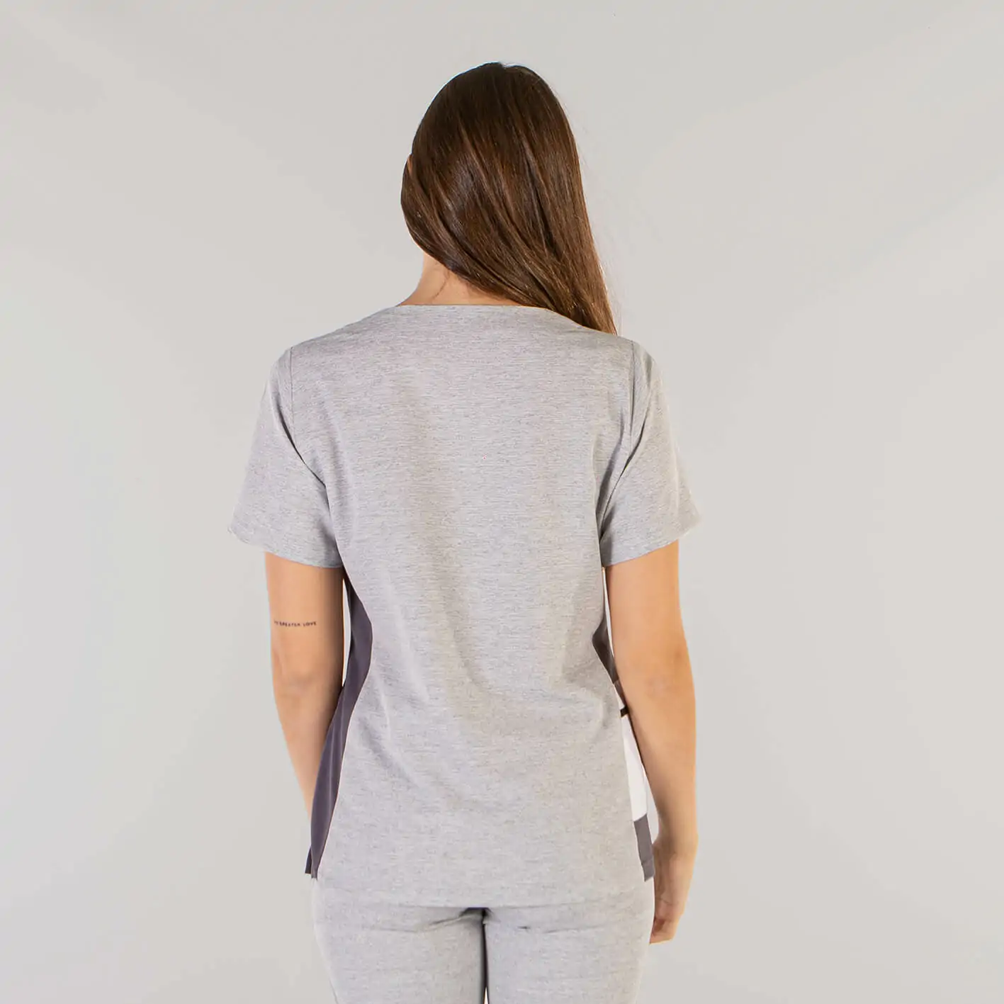 - Casaca de mujer de manga corta, cuello de pico, dos bolsillos delanteros y otro con cremallera en costadillo
