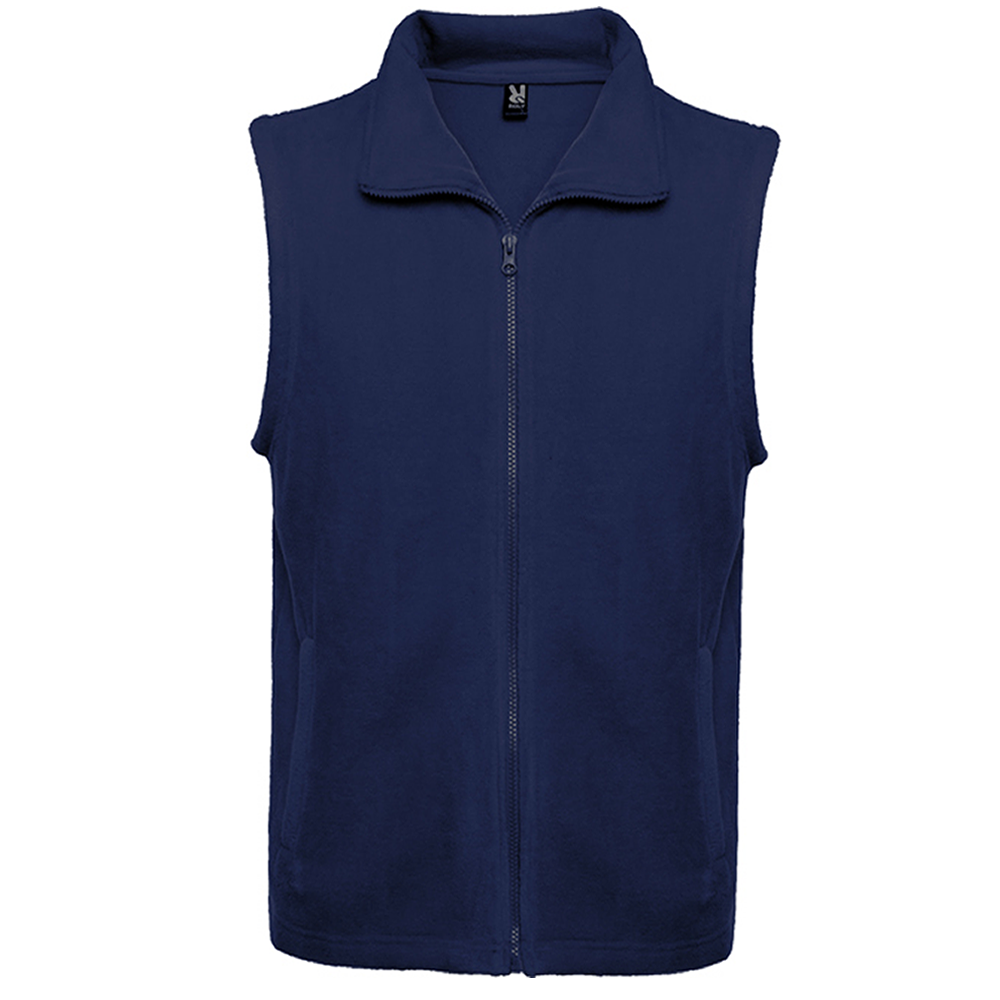 Chaleco polar con cuello alto. Cremalleras inyectadas a tono. Bolsillos laterales con tapeta.
