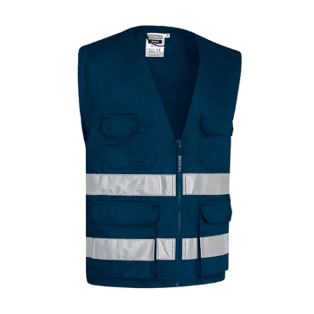 - Chaleco en tejido sarga con forro interior de rejilla para favorecer la transpiración.