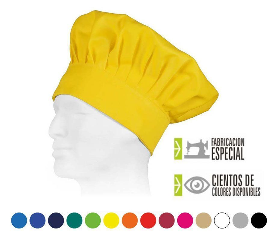Gorro de cocinero ajustable. Disponible en muchos colores. Gorro de cocinero y chef en forma de champiñón. Talla única regulable con velcro para una mayor adaptabilidad. Gorro económico para cocina y chefs. Excelente para uniformes de cocina. Gramaje 200 g/m².