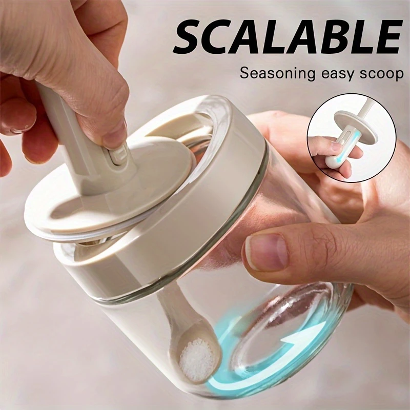 Estos son ideales para mantener la frescura de las especias. Uno de los modelos más destacados es el tarro de vidrio hermético para especias con cuchara telescópica. Este tipo de recipiente tiene una tapa antiderrames y un diseño transparente que permite ver fácilmente el contenido.
