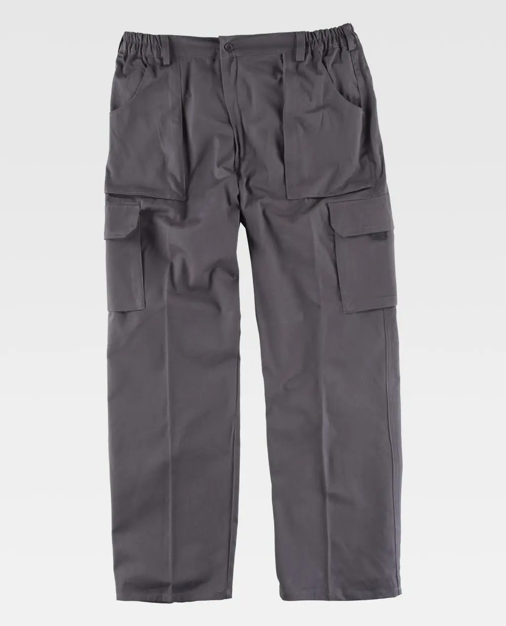 - Refuerzo en culera. Elástico en los laterales de la cintura. Trabillas para cinturón. Cierre de botón y bragueta de cremallera.