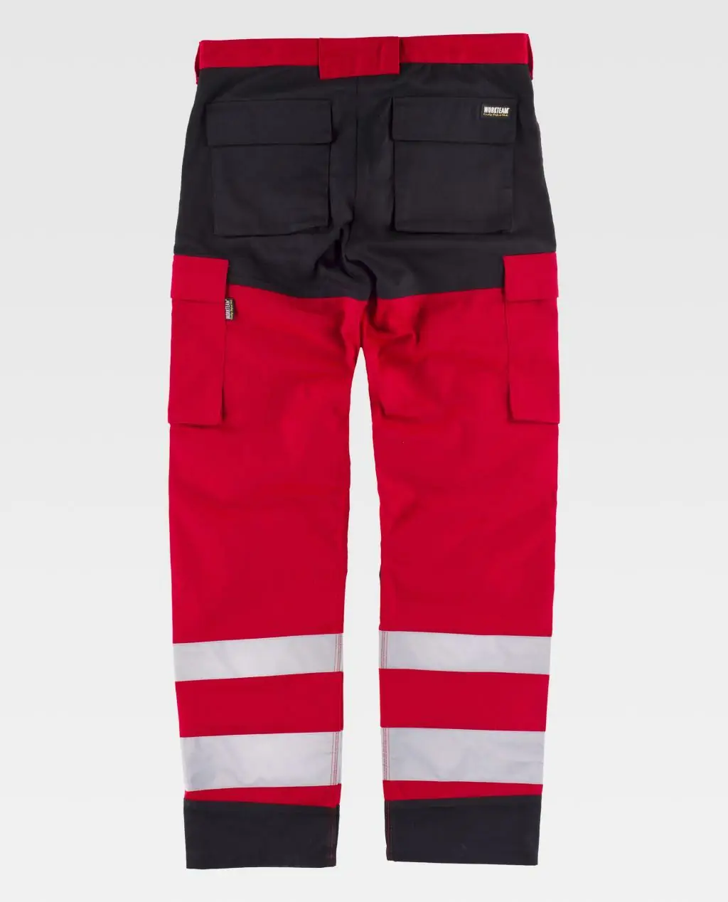 - Pantalón de alta visibilidad de triple costura combinado y con cintas reflectantes.