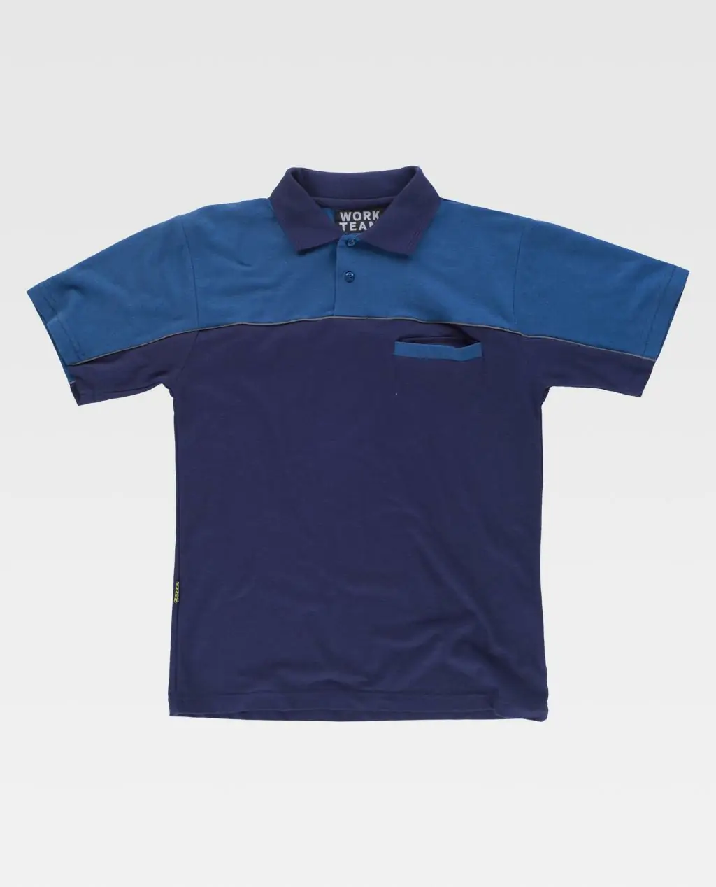 - Polo de colores combinados de manga corta en tejido piqué con vivos reflectantes.